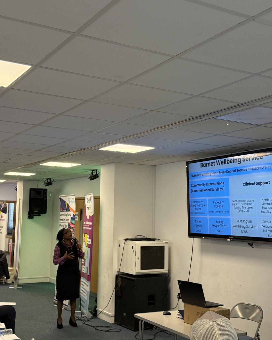 Tola explained how people are first supported through an emotional health check before being connected to appropriate community services, workshops and one-to-one support. She also shared some of the service’s impact over the past year, including that the Barnet Wellbeing Hub supported 1,088 individuals and connected people to more than 350 community wellbeing services. It was also encouraging to hear that over 93% of respondents said they were satisfied or very satisfied with the support they received. Her presentation gave a really strong picture of the value of Barnet Wellbeing Service and the difference community-based support can make.