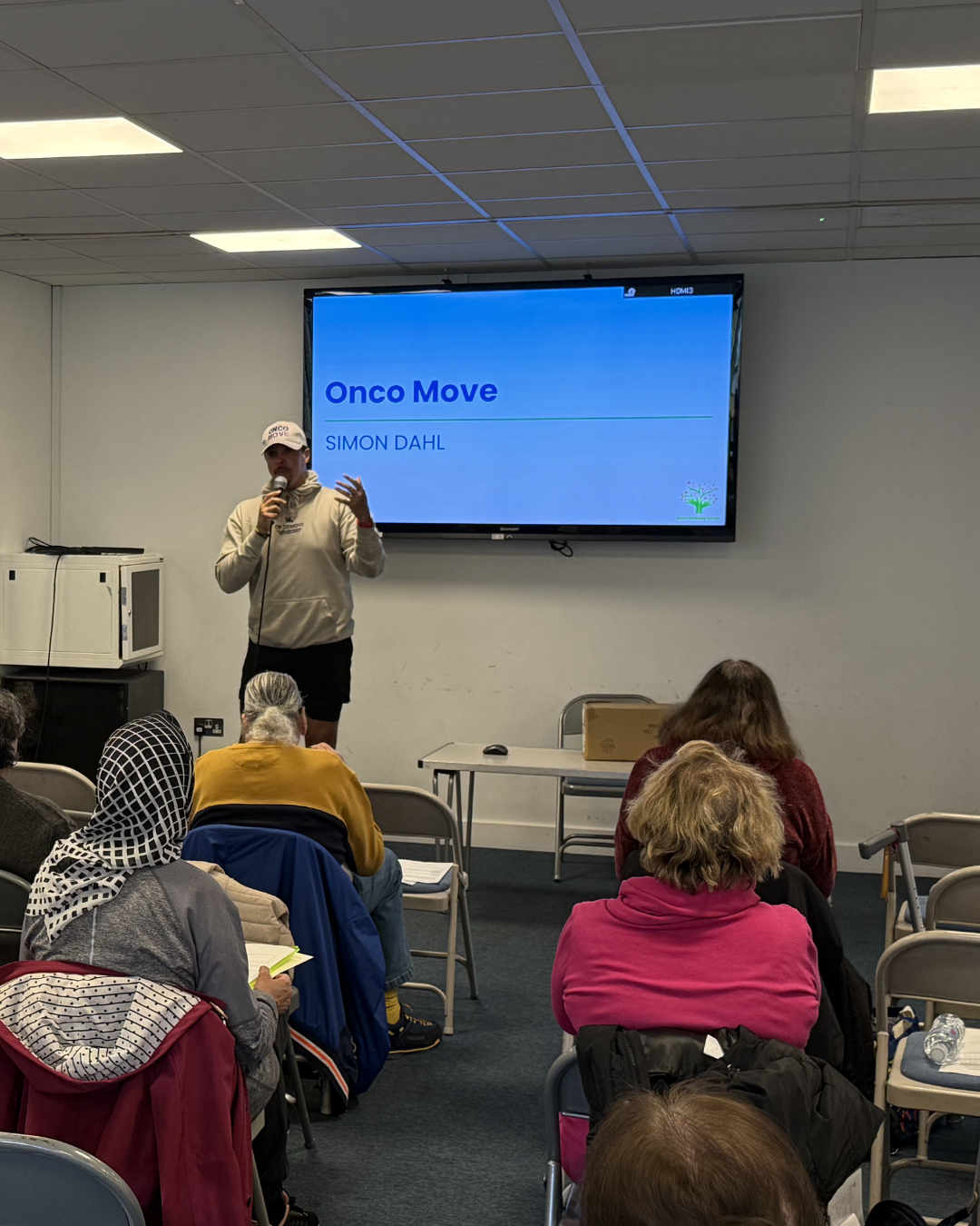 We then heard from Simon Dahl from Onco Move CIC, who shared the work he has been doing to support people with a cancer diagnosis to build manageable physical activity into daily life.